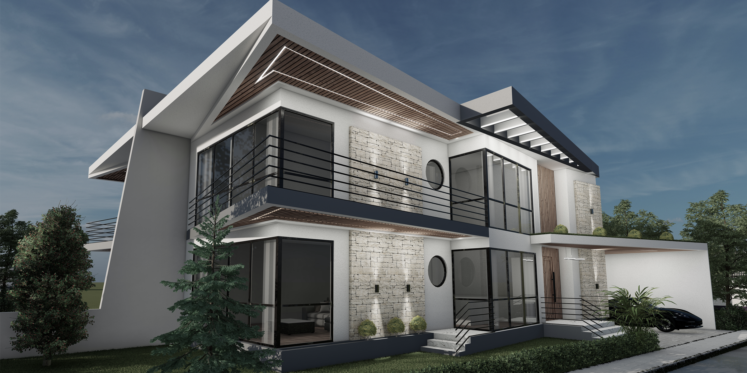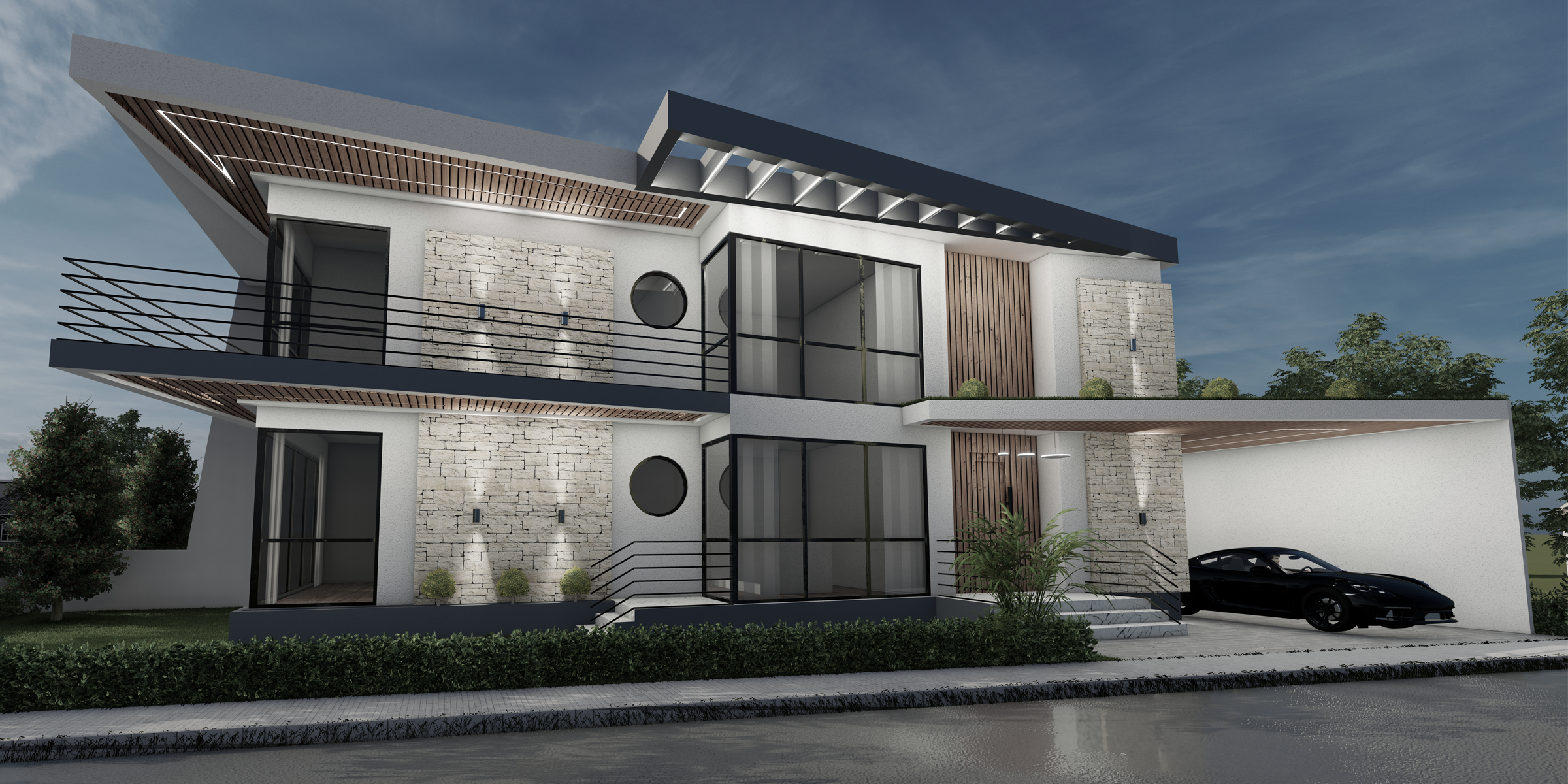 Tasarımda net geometriler, yatay vurgular ve doğal malzeme kullanımı ön plana çıkarılmıştır.