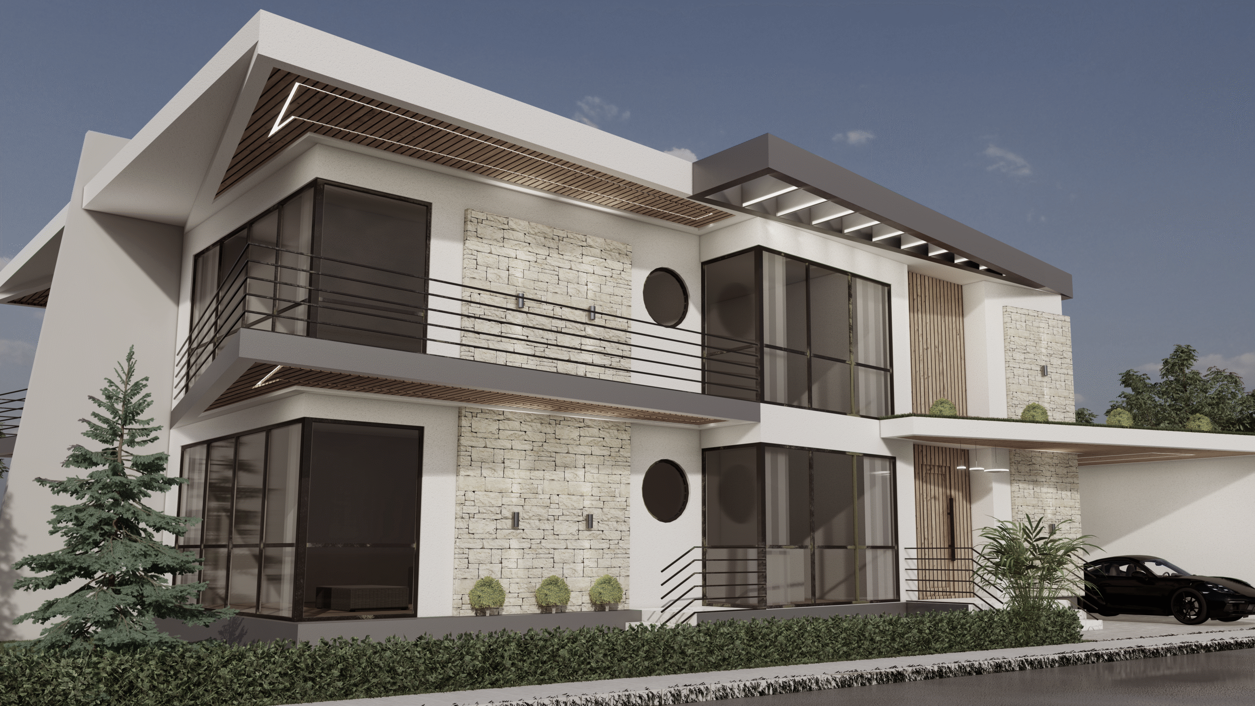 Kütle kompozisyonu, farklı düzlemlerin dengeli biçimde bir araya gelişi ile hareket kazanırken; çıkmalar, geri çekilmeler ve düşey elemanlar hacimsel derinlik oluşturulmuştur. Cephede kullanılan doğal taş, ahşap dokular ve geniş cam yüzeyler, yapıya hem sıcaklık hem de modern bir kimlik kazandırılmıştır.